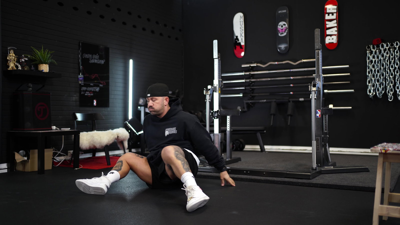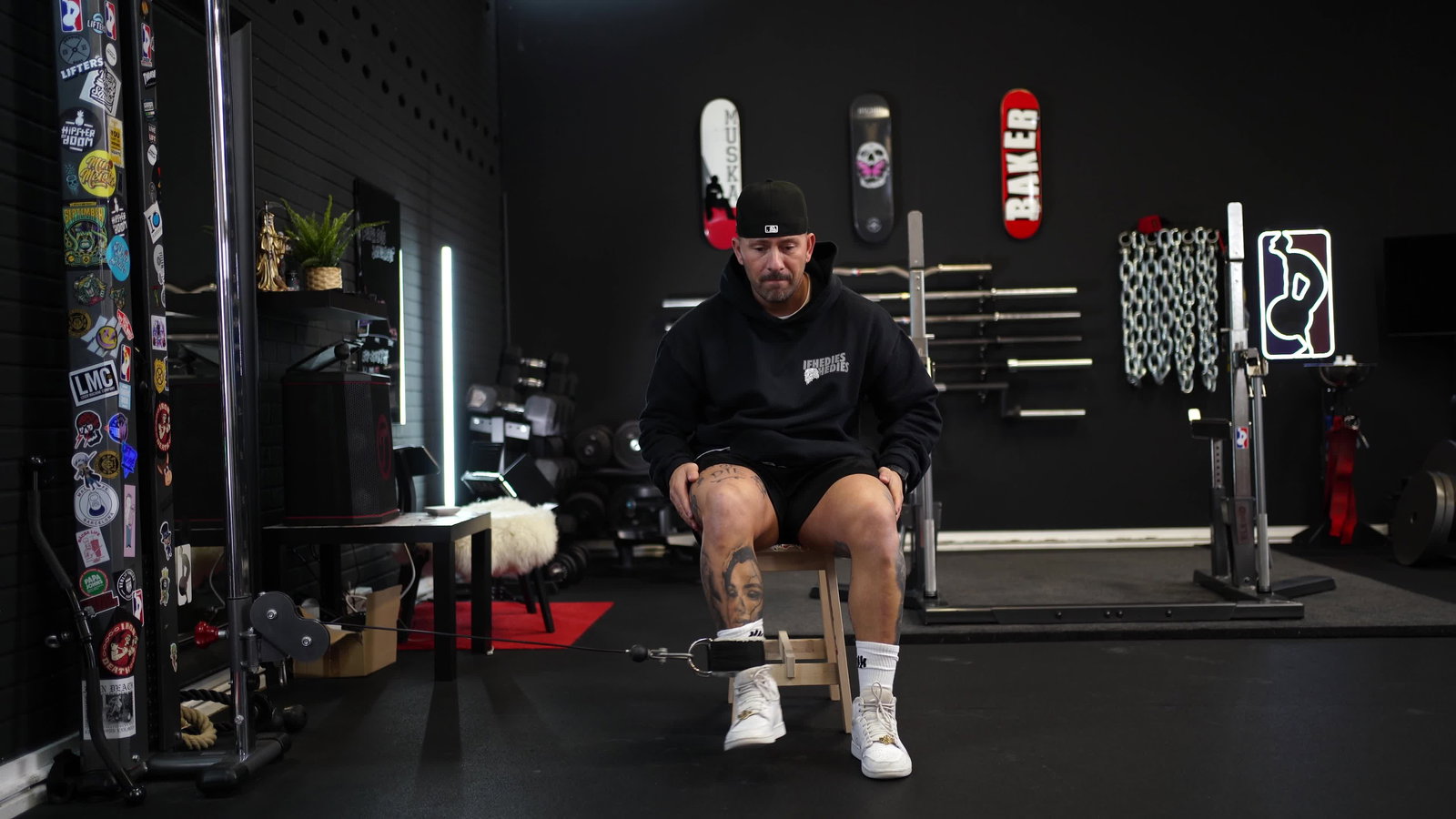 Wähle links eine Übung aus. Rechts siehst du Video/Preview und die wichtigsten Infos (Sets, Reps, Zeit, Pause). Hinweise & Equipment findest du ebenfalls dort.